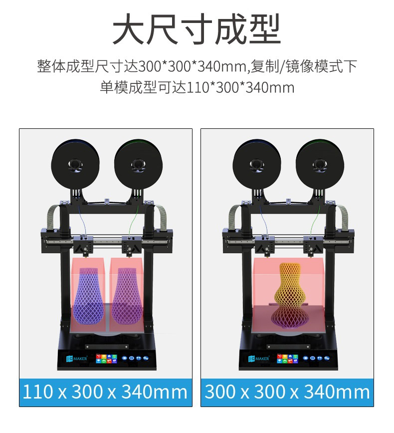 噴嘴直徑:0.4、0.6、0.8-可選成型尺寸:310*310*350mm