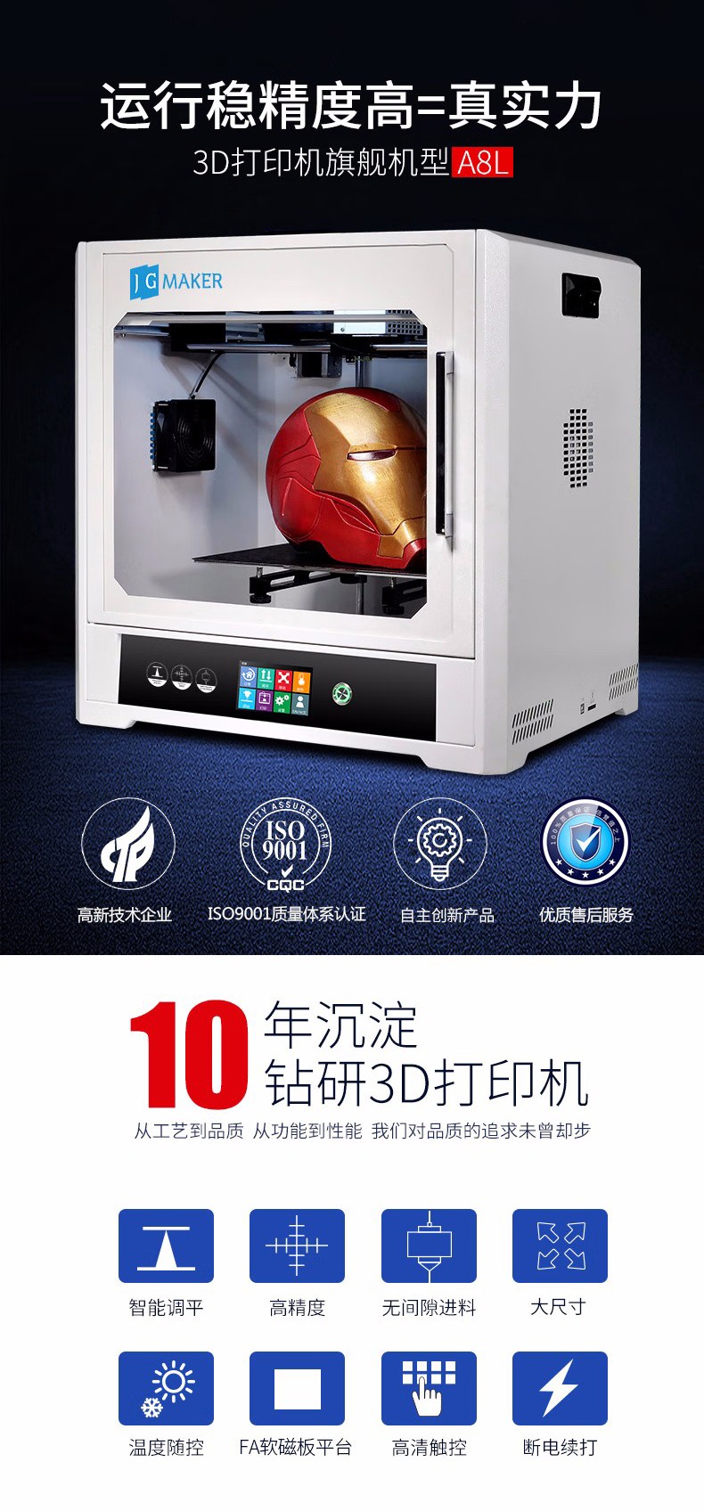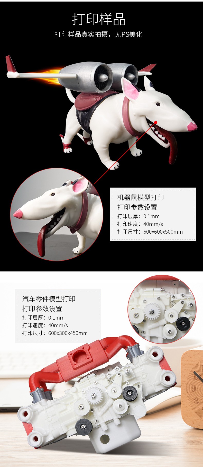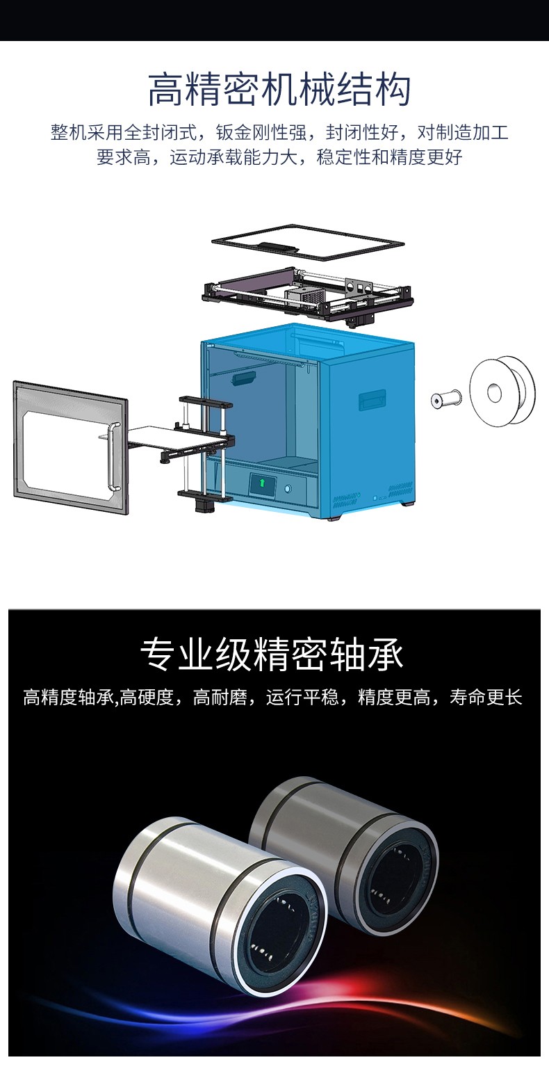 4.3英寸電容觸摸屏,清晰美觀,操作簡單;FA特制平臺,打印完成可取下平臺,輕松取模;模塊化一體式封閉設計,提高模型打印成功率;內置空氣過濾系統,有效濾除打印過程中產生的顆粒;具有暫停續打、斷電續打及斷料檢測等功能;高精度,大尺寸打印,可應對各種結構復雜的手辦模型