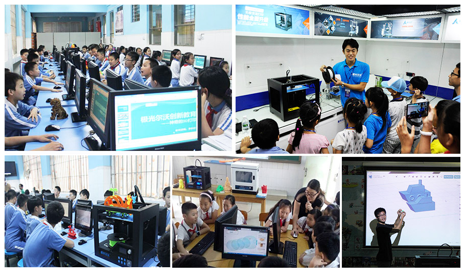 極光爾沃聘請專業(yè)教師團(tuán)隊,建立3D創(chuàng)新教育實驗室,基于3D打印的優(yōu)勢和特性,開發(fā)出了一套體系化的符合目前